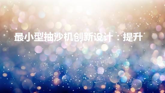最小型抽沙機創新設計:提升效率的抽沙設備如何改變產業格局?